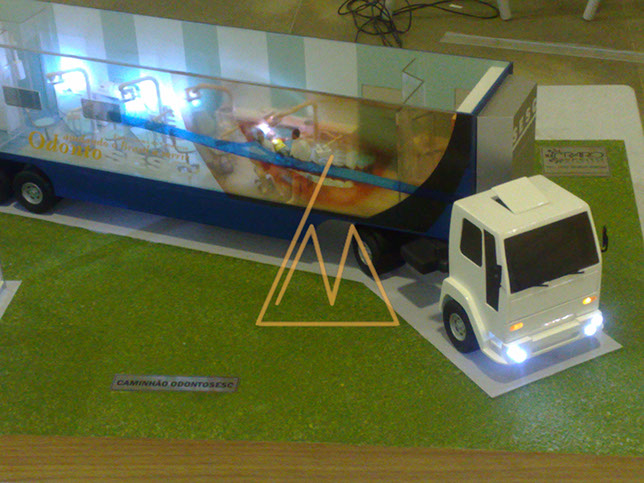 Fotos da maquete do caminhão móvel da Odontosesc. O objetivo do projeto é