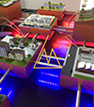 Photos de maquettes à l'échelle 1/200. Le but du modèle est de montrer des solutions en hydraulique.